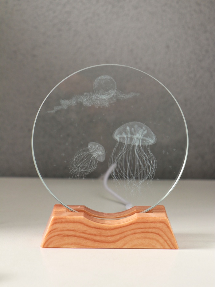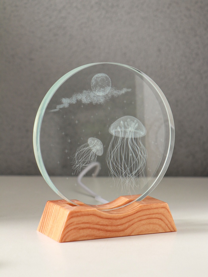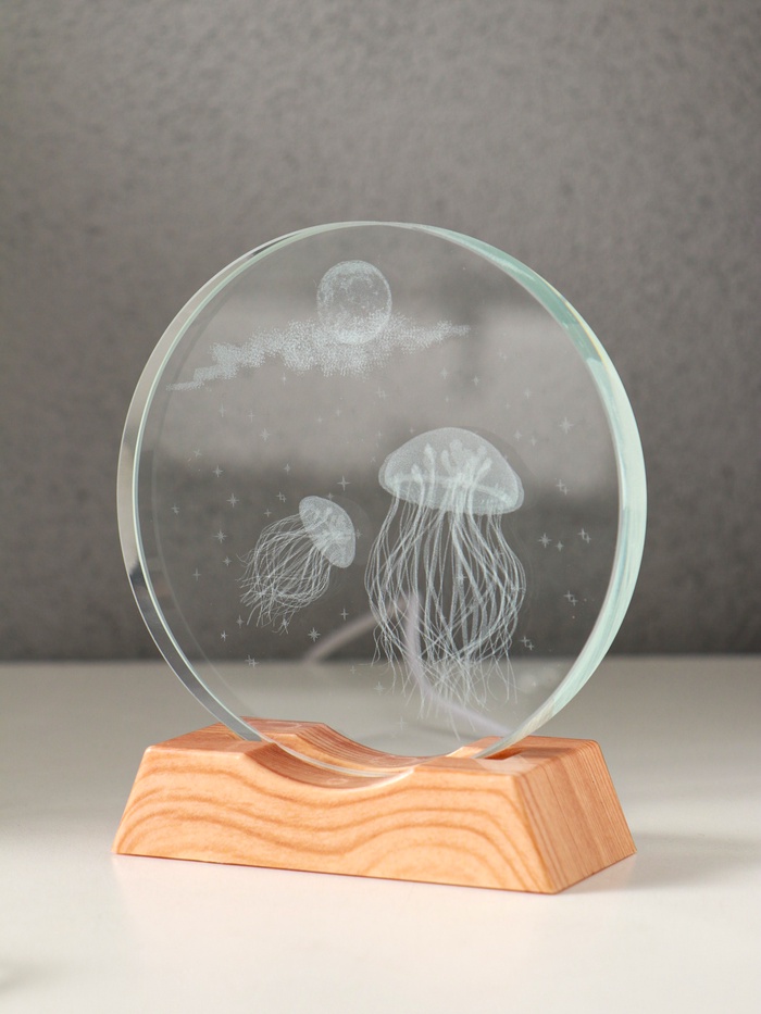 Этот голографический аксессуар создаёт в комнате атмосферу глубокого моря. Внутри стеклянного диска парят медузы, подсвеченные мягкой LED-подсветкой. Подключите его к USB-порту, чтобы оживить интерьер без лишних хлопот.