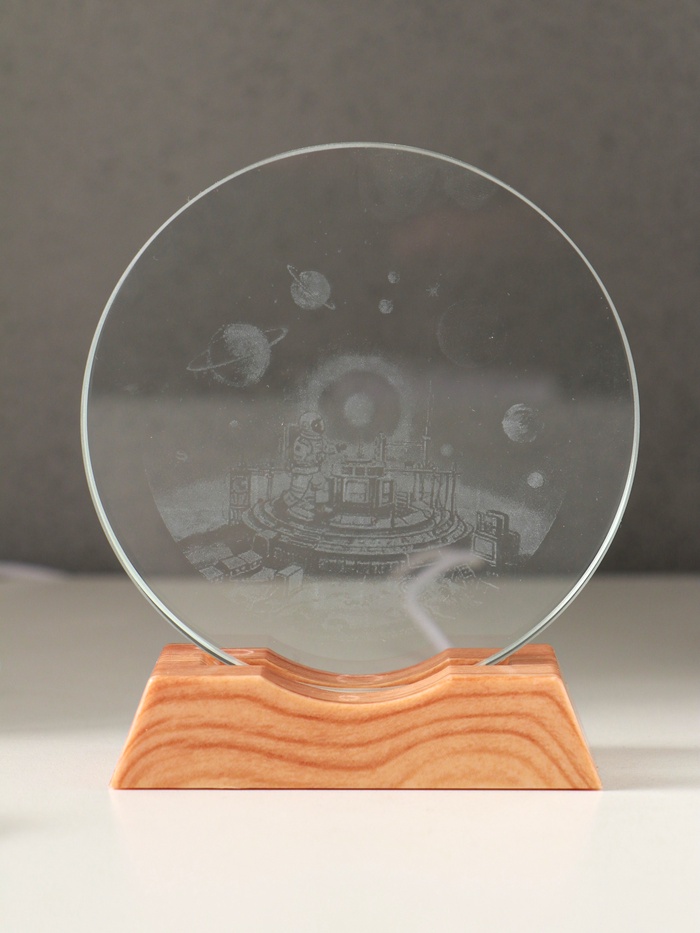 - Чёткая 3D-голограмма в круглом стеклянном диске.