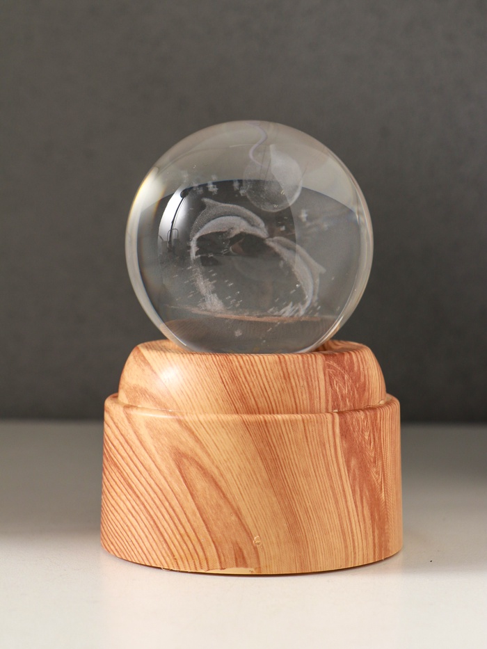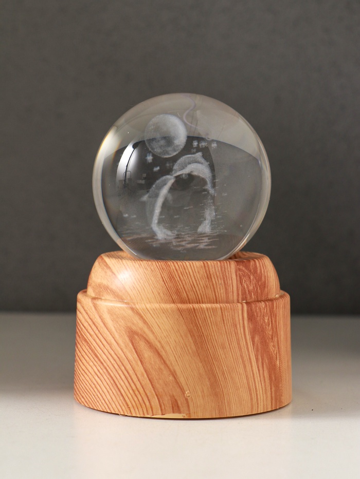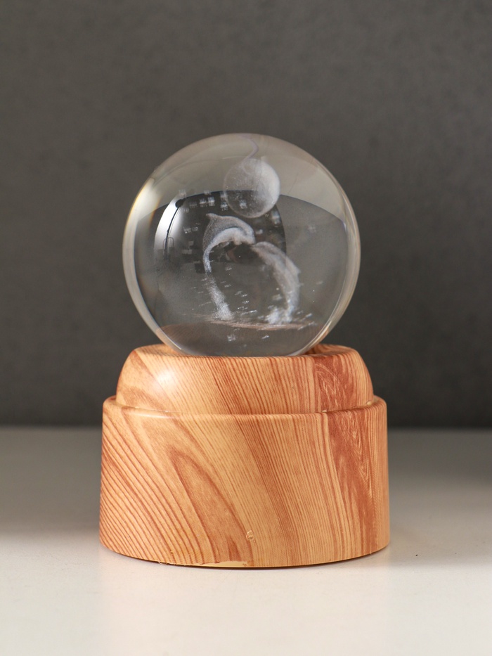 - Стеклянный шар с голографическим изображением дельфинов в лунном свете.