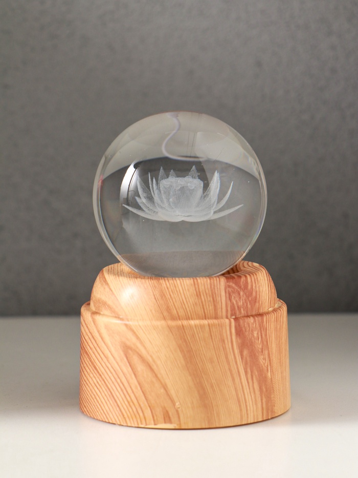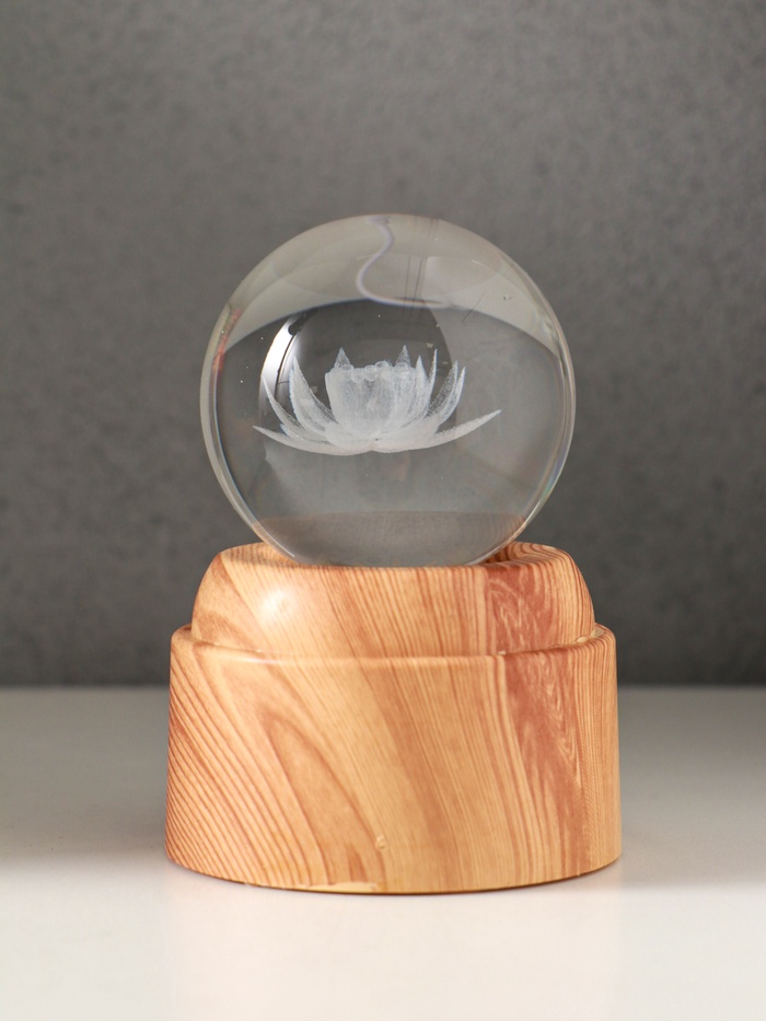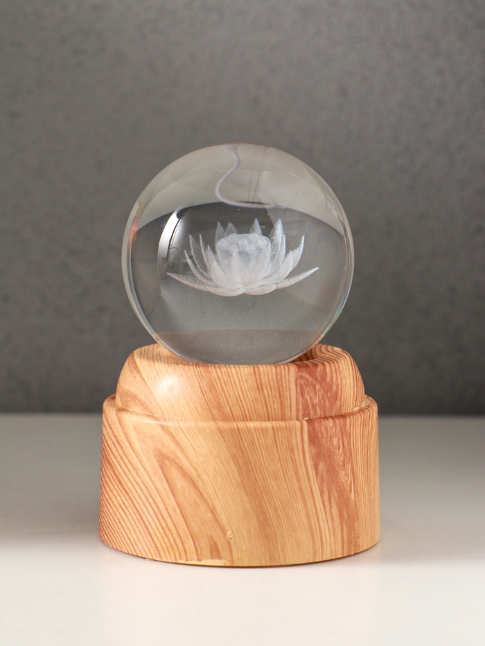 Световая фигурка стекло «Шар. Голограмма: Лотос», 6×LED, d=6 см, крутится, USB, 7×7×10 см