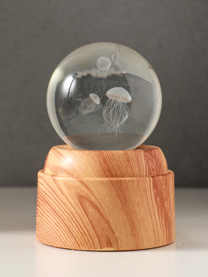 Технические характеристики Световая фигурка стекло «Шар. Голограмма: Медузы», 6×LED, d=6 см, крутится, USB, 7×7×10 см