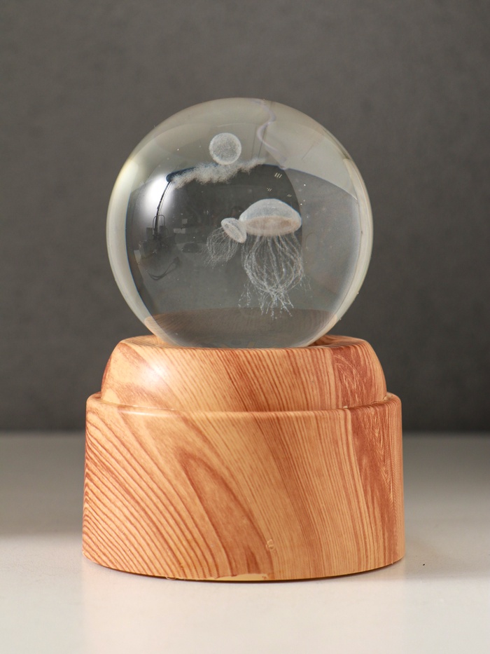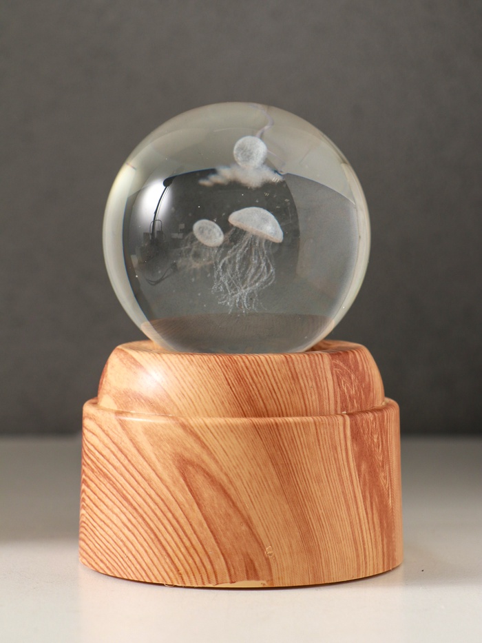 Световая фигурка стекло «Шар. Голограмма: Медузы», 6×LED, d=6 см, крутится, USB, 7×7×10 см
