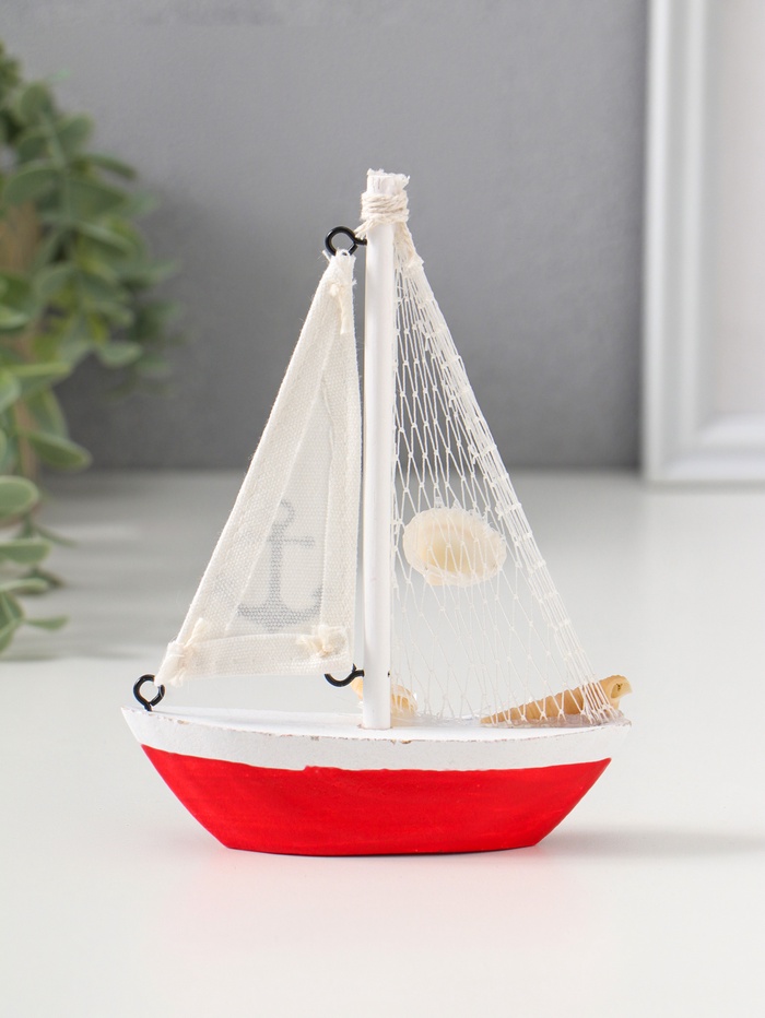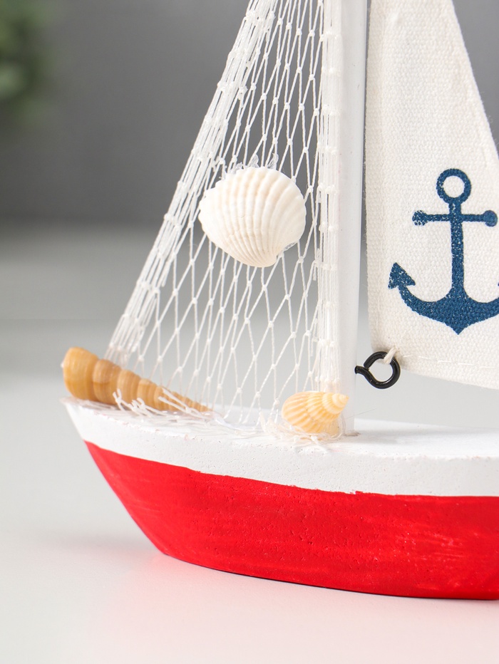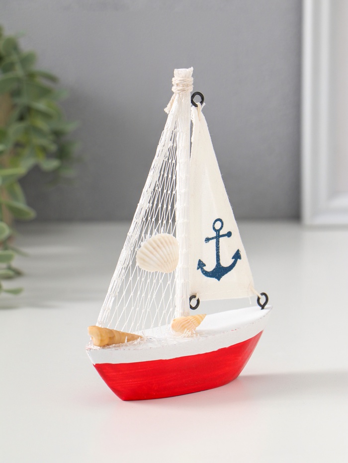 Сувенирная модель корабля «Парусная лодка с якорем на парусе», дерево, бело-красный, 11×2.5×14 см