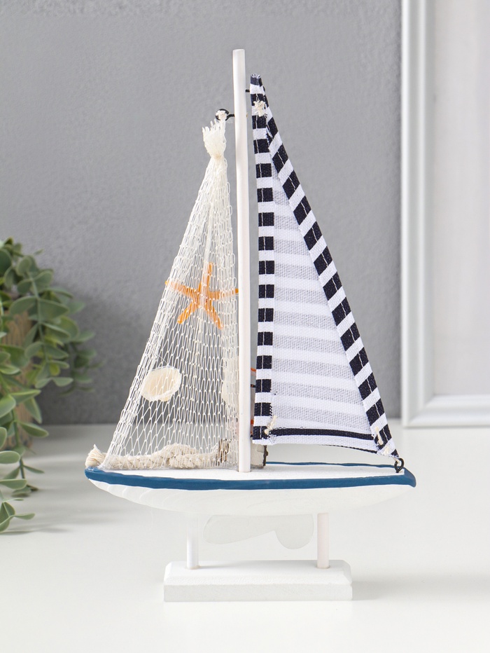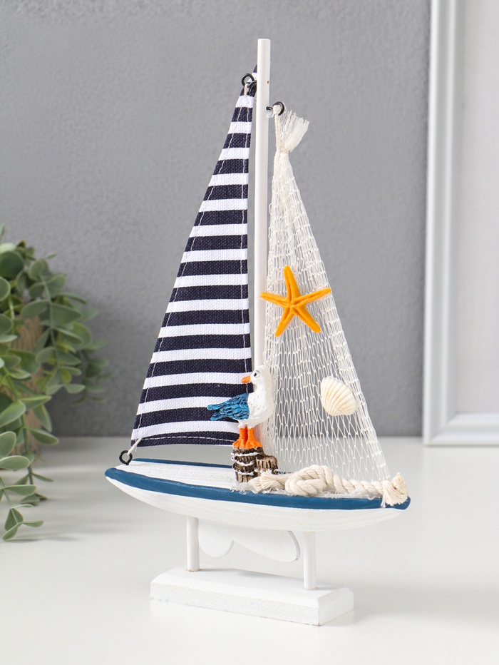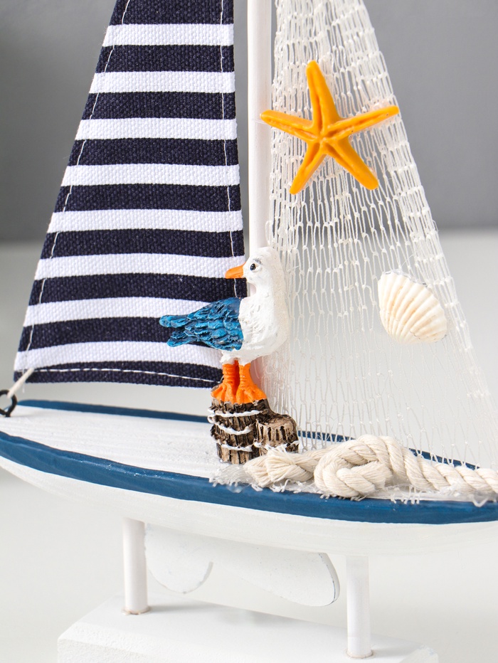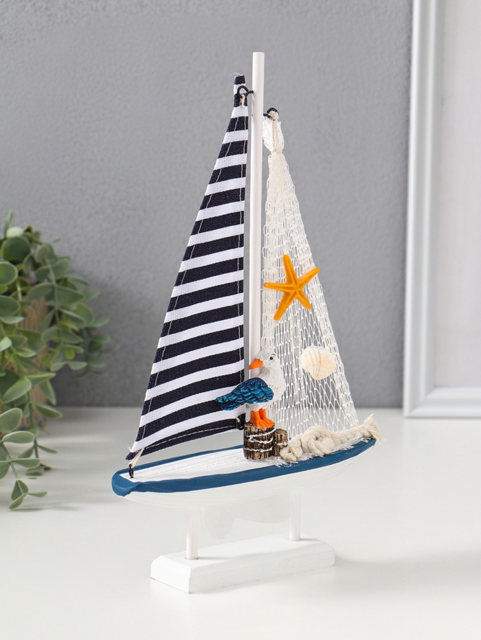 Сувенирная модель корабля дерево «Парусник с чайкой», бело-синий, 16.5×4.5×27.5 см