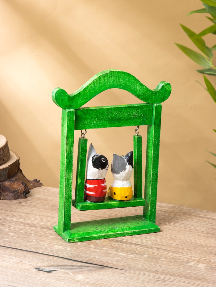 Сувенир интерьерный «Кошечки на качелях», 15×7×25 см, дерево, зелёный