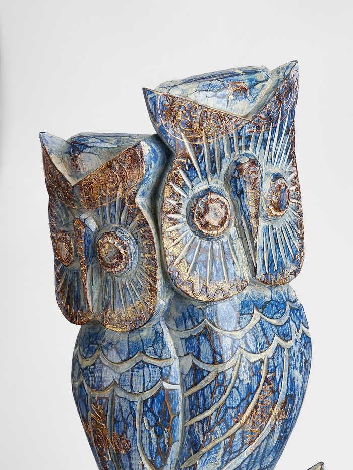 Деревянные совы на ветке — это лаконичный элемент декора, который добавляет уют в интерьер. Фигурка высотой 60 см выполнена в голубом цвете и подходит для любого пространства: от спальни до офиса. Изделие станет самостоятельным акцентом на полке, комоде или подоконнике.