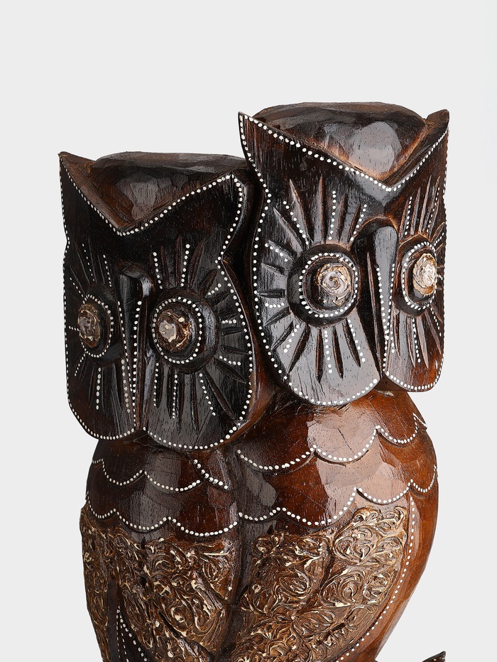 Деревянные совы на ветке — интерьерное украшение для дома, офиса или дачи. Композиция высотой 60 см станет акцентом в гостиной, прихожей или на каминной полке. Фигура вырезана из массива дерева и выкрашена в глубокий коричневый цвет, что позволяет вписать её в скандинавский, эко- или классический интерьер.
