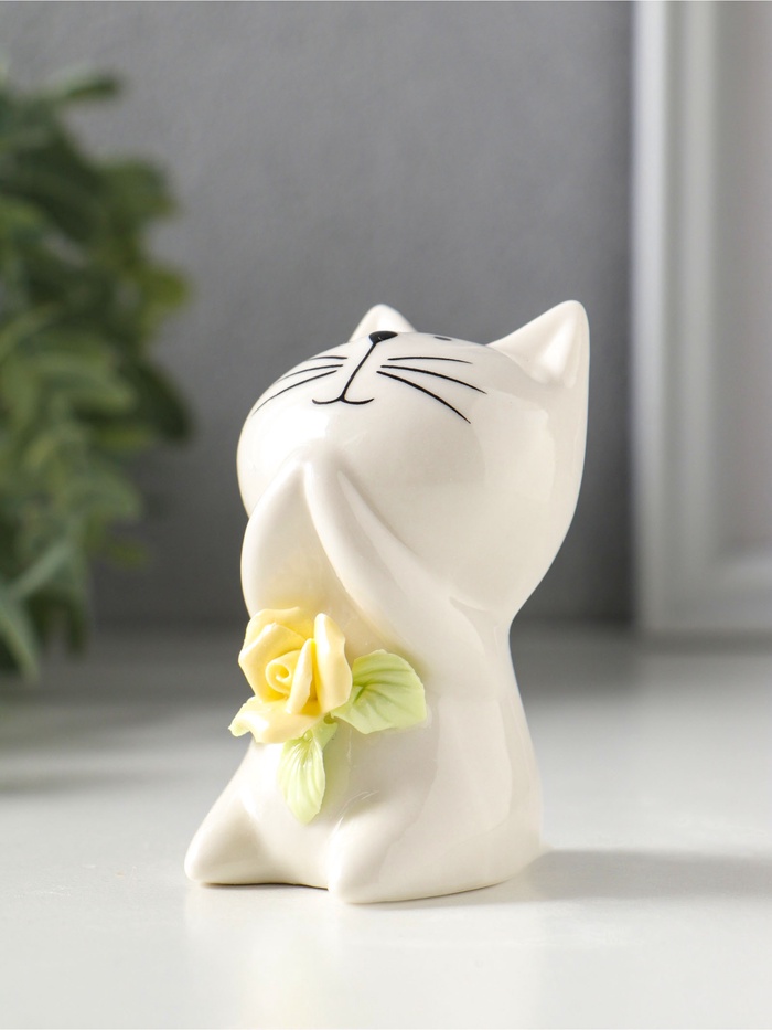 Сувенир керамика "Белый котёнок с желтым цветочком" 5,2х5х7,6 см