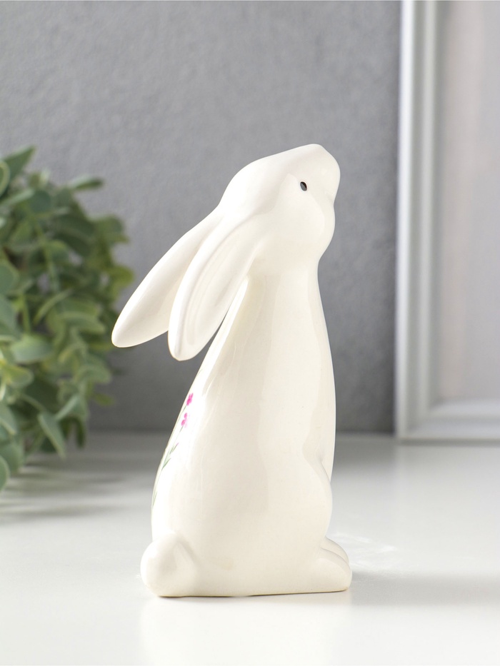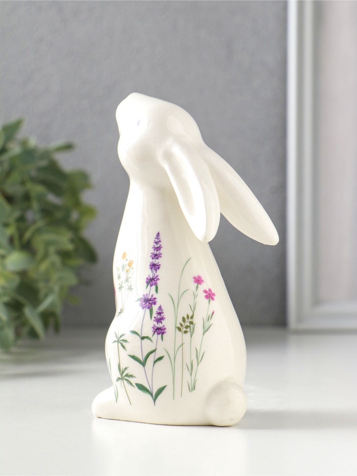 Сувенир керамика "Белый зайка - полевые цветы" 7,3х5,6х12,7 см