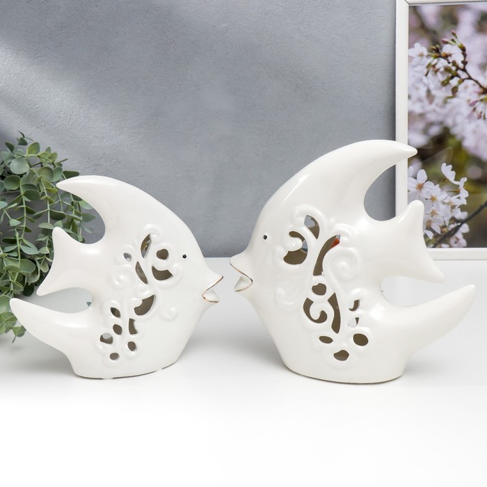 Набор фигурок керамика «Две рыбки-скалярии с цветами», 2 шт.