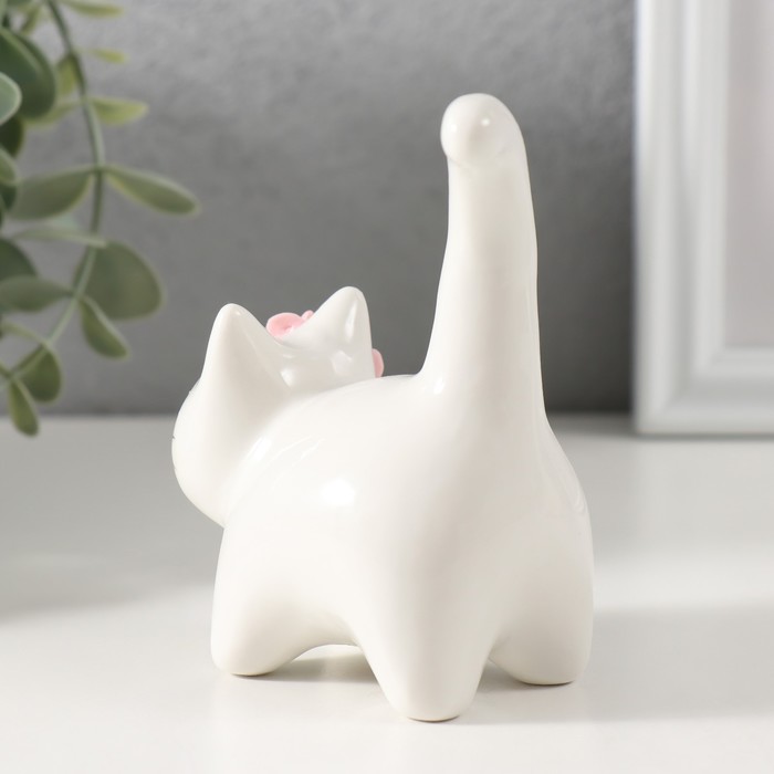 Фигурка керамика «Котик белый пухлый с розовыми цветочками», 7.8×5×10 см