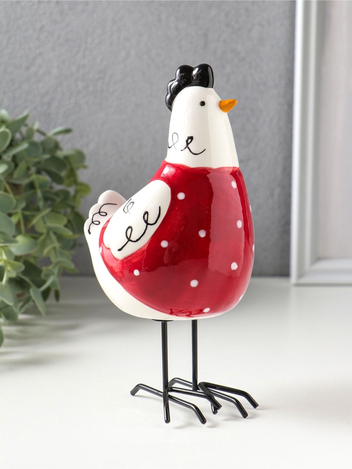 Сувенир керамика "Курочка красная в белый горошек" 9,7х8,2х17,4 см