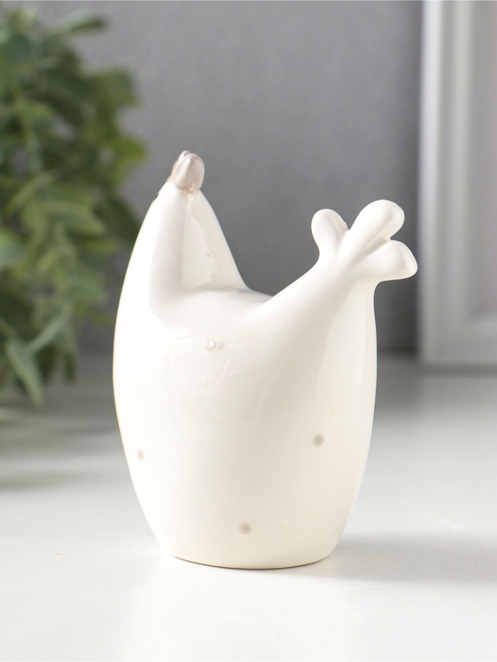 Сувенир керамика "Курочка в серый горох, с пасхальным яйцом сбоку" 7,9х4,8х9,1 см