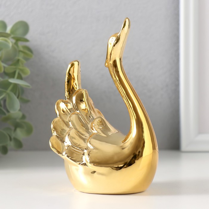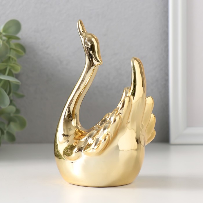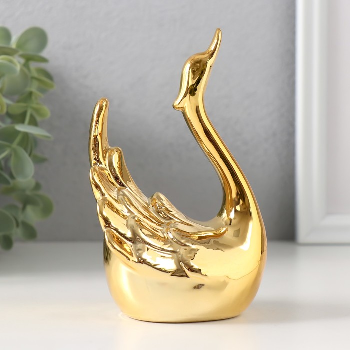 Фигурка керамика «Лебедь. Покорность», под золото, 6×10.5×14 см