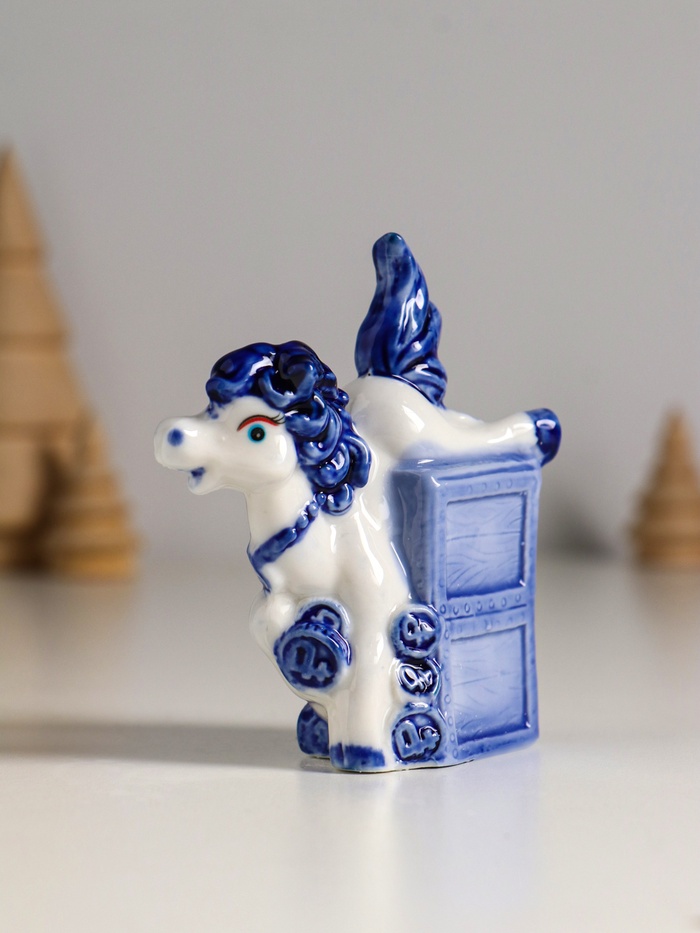 Фигурка керамика «Лошадка денежная», бело-синий, 7.1×3.1×9 см, МИКС