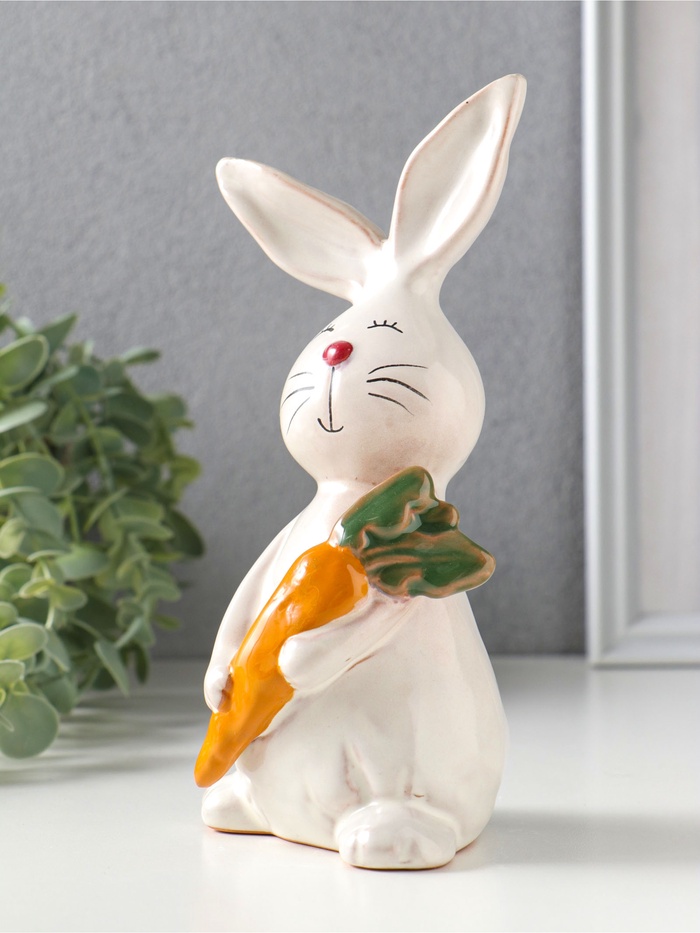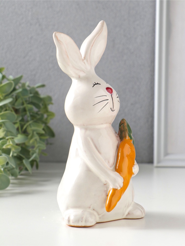Сувенир керамика "Зайчик с оранжевой морковкой" 9,7х8,5х18,7 см