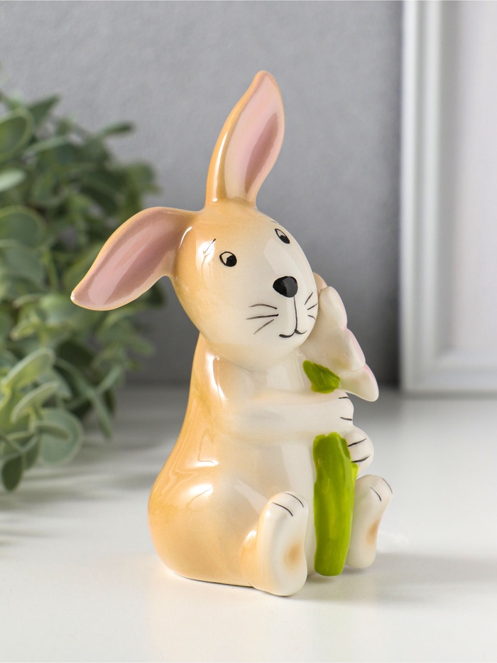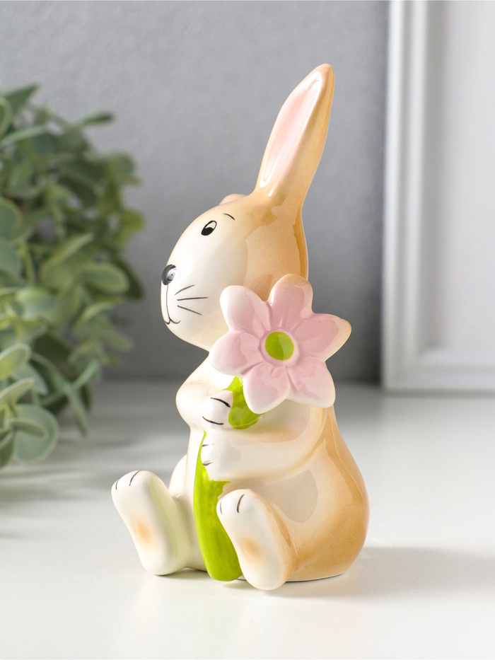 Сувенир керамика "Зайчик с розовой ромашкой" 7,9х7,3х14 см