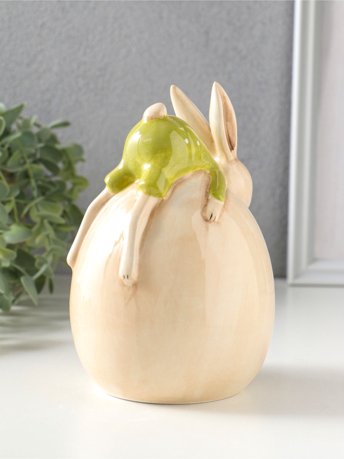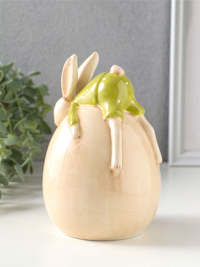 Сувенир керамика "Зайчик в зелёном костюме, лежит на яйце" 10,4х10х14,9 см