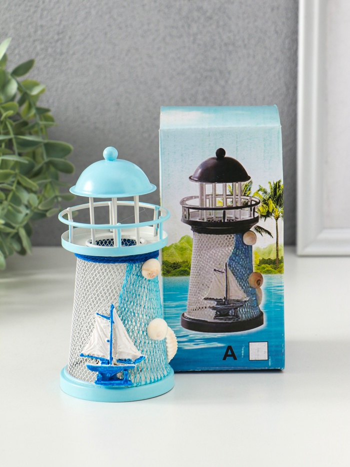 - Стилизация под маяк с корабликом и рыболовной сетью для полного погружения в морскую тематику.