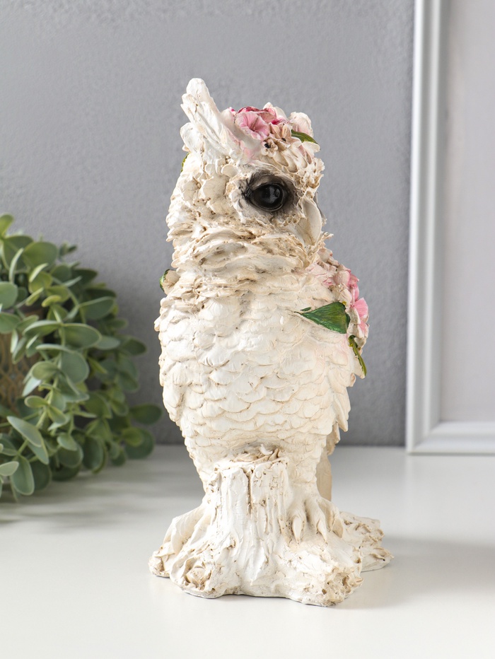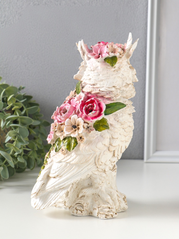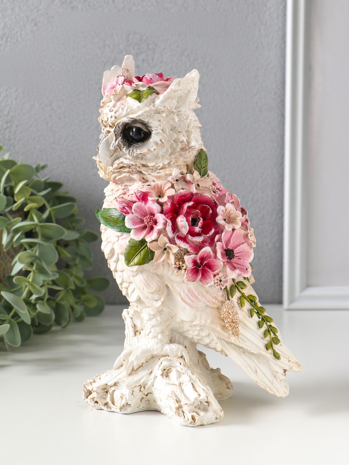 Фигура полистоун «Белая сова в цветах», 13×10×22 см