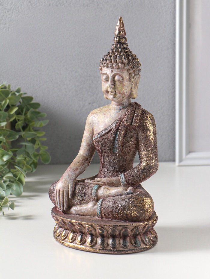 Сувенир полистоун "Будда" с золотой патиной 10х14х25,5 см