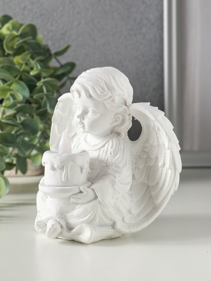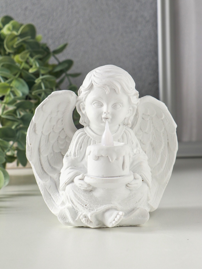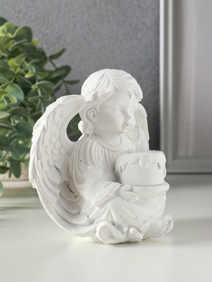 Фигурка светящаяся полистоун «Белоснежный ангел с тортом», 11.8×8×11.5 см