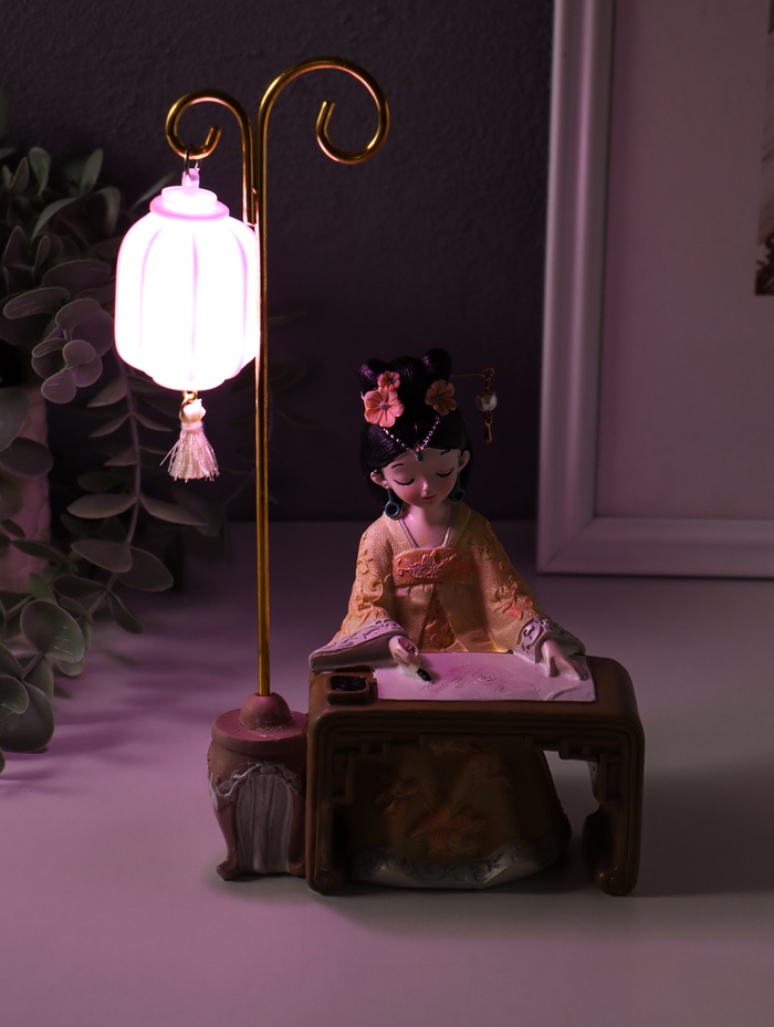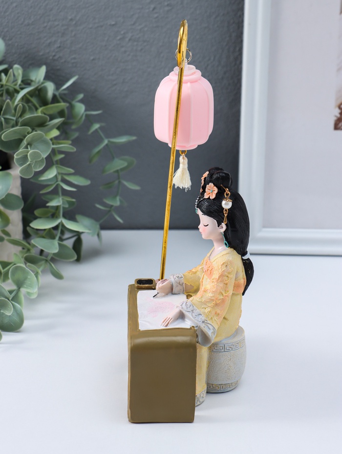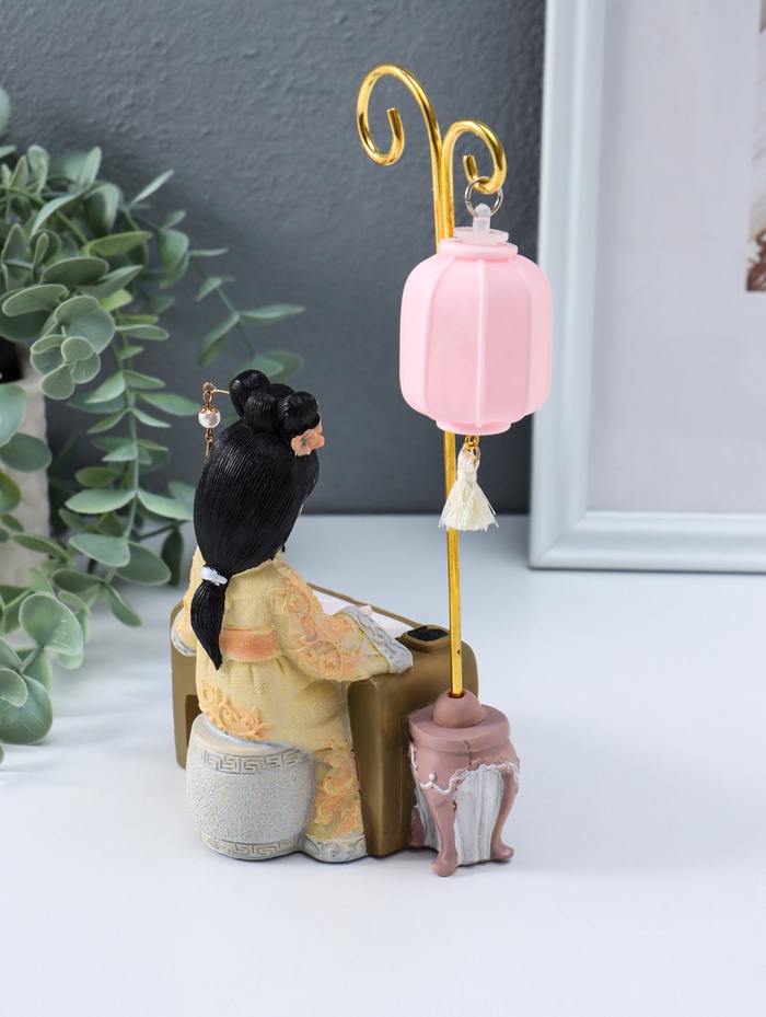 Фигурка светящаяся «Девочка в кимоно занимается каллиграфией», полистоун, 3×AG3, 6.8×11.5×21 см