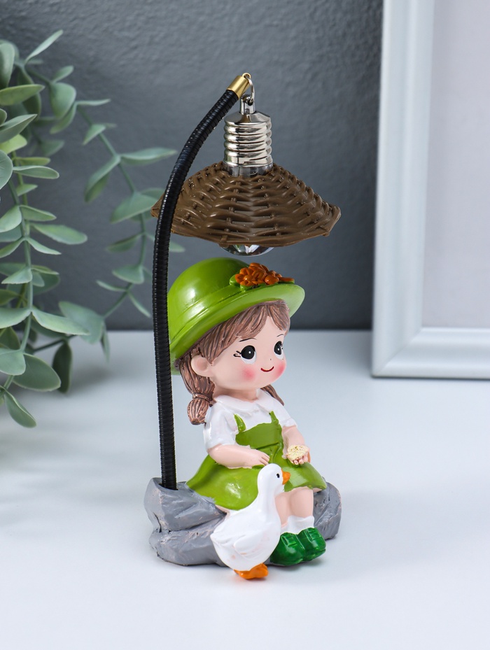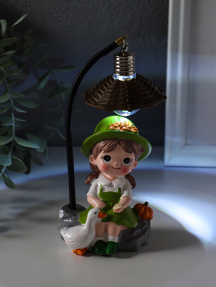Фигурка светящаяся «Малышка в шляпке, с гусём», полистоун, зелёный, 3×AG3, 5.5×7×17 см