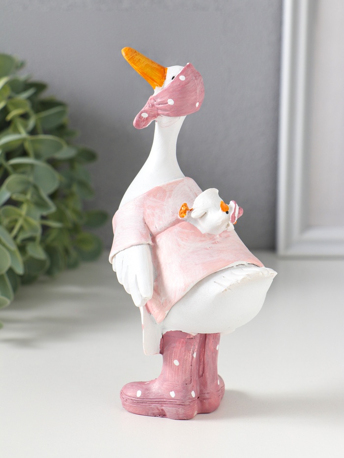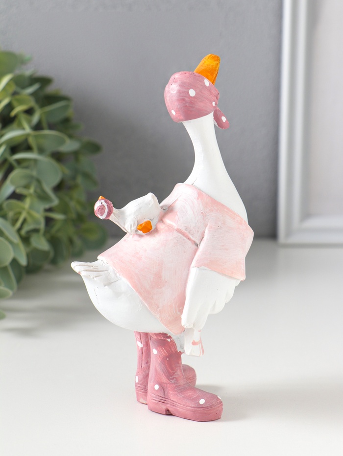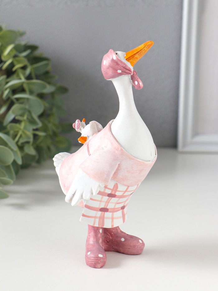 Фигурка полистоун «Гусыня в розовой косынке, с малышом на спине», 9×6.5×15 см