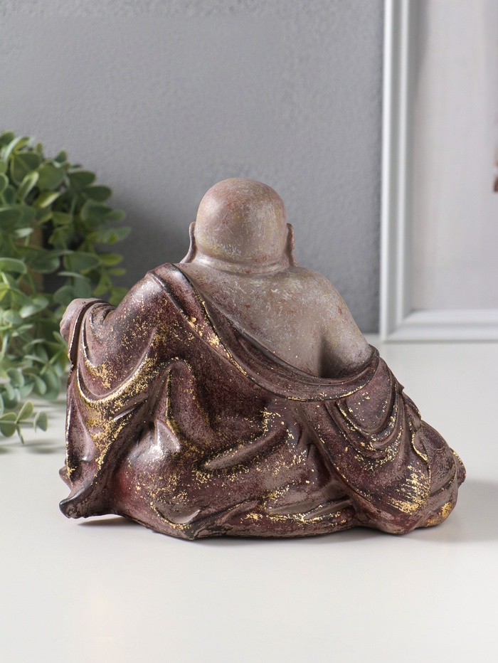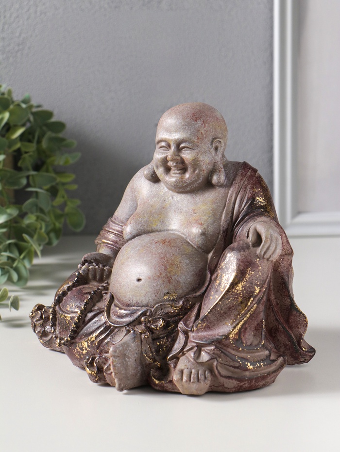Сувенир полистоун "Хотей с чётками" с золотой патиной 15,7х20,5х17 см
