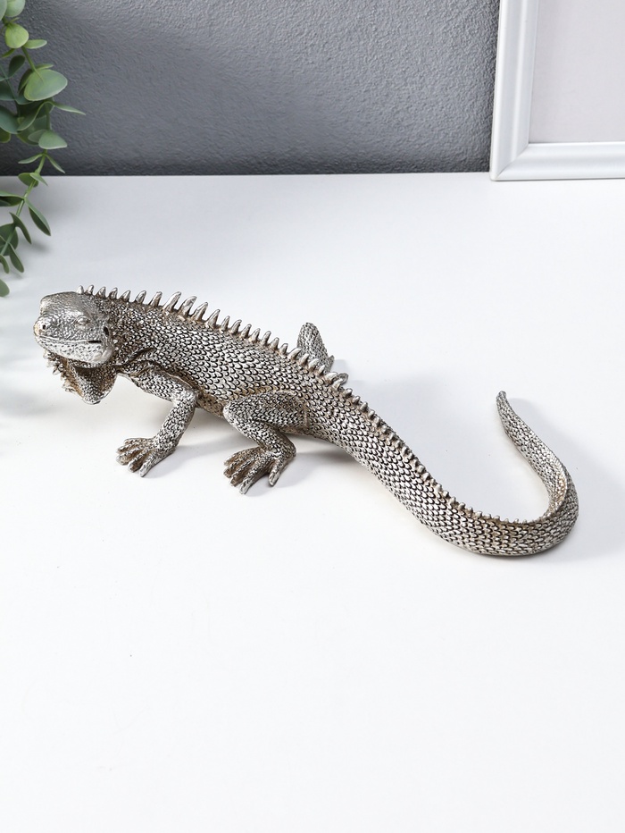 Фигура полистоун «Игуана», под чернённое серебро, 25.2×12.2×7 см