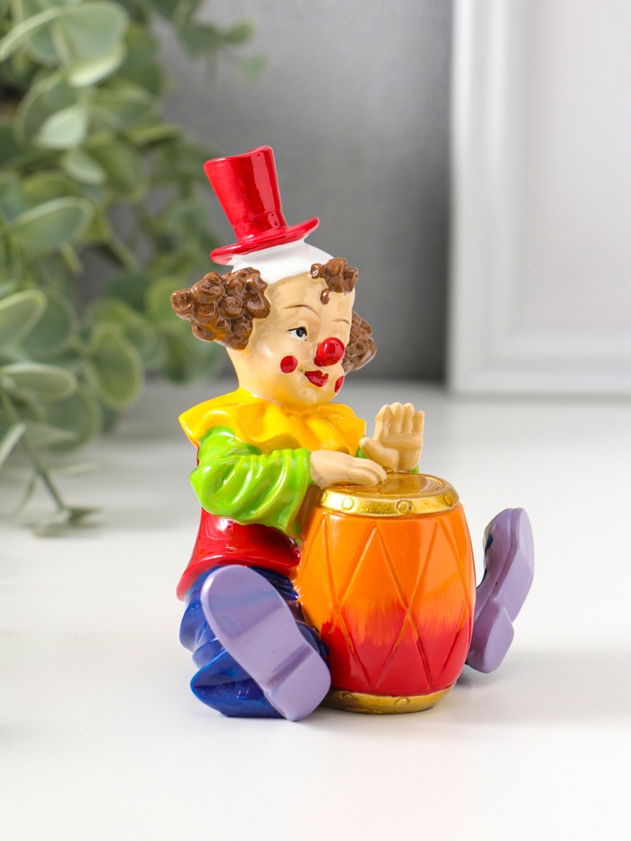 Фигурка полистоун «Клоун с играет на барабане», яркий разноцветный, 11 см