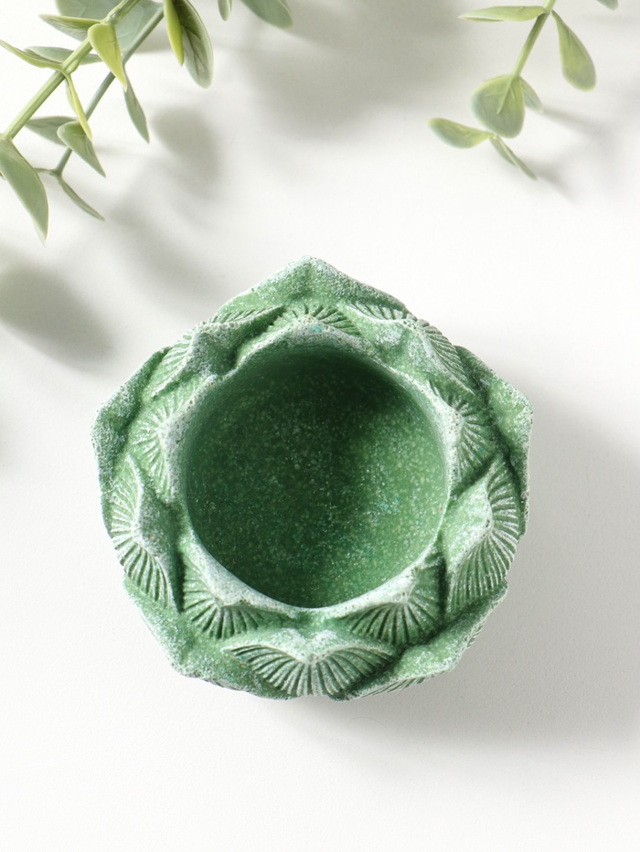 Эта зелёная фигурка Будды на лотосе создаёт атмосферу умиротворения в любом пространстве. Её компактный размер делает её универсальным элементом декора для полки, рабочего стола или домашнего алтаря. Статуэтка отлита из плотного полистоуна, что обеспечивает детальную проработку образа и долговечность.