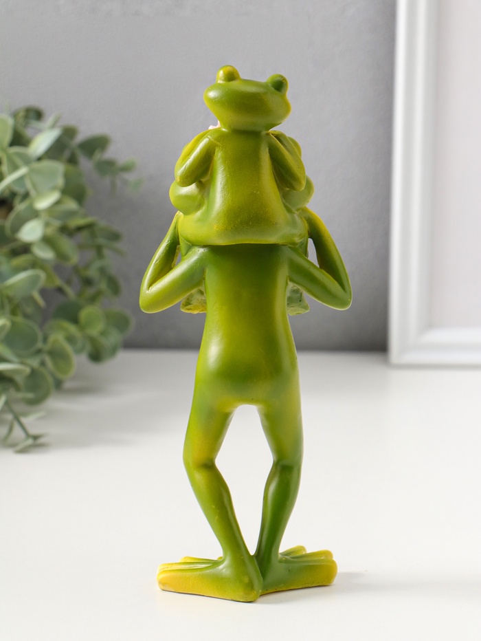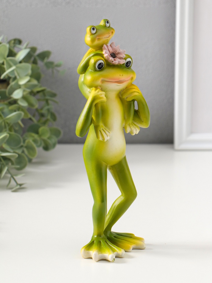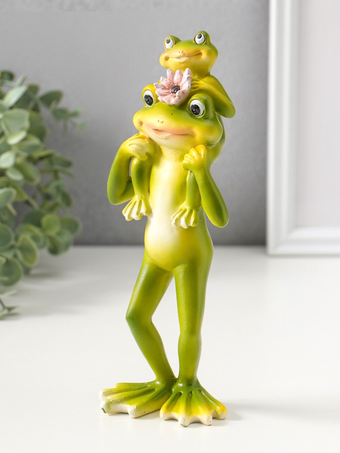 Фигура полистоун «Лягушонок с розовым лотосом, посадил малыша на шею», 21.5 см