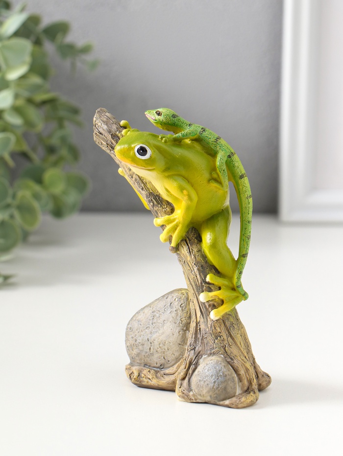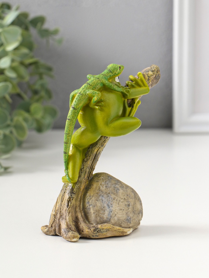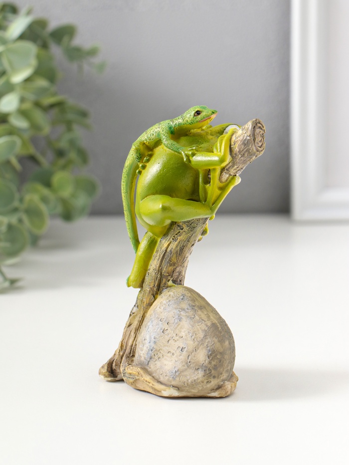 Фигурка полистоун «Лягушонок на дереве с ящерицей на спине», 12.5 см