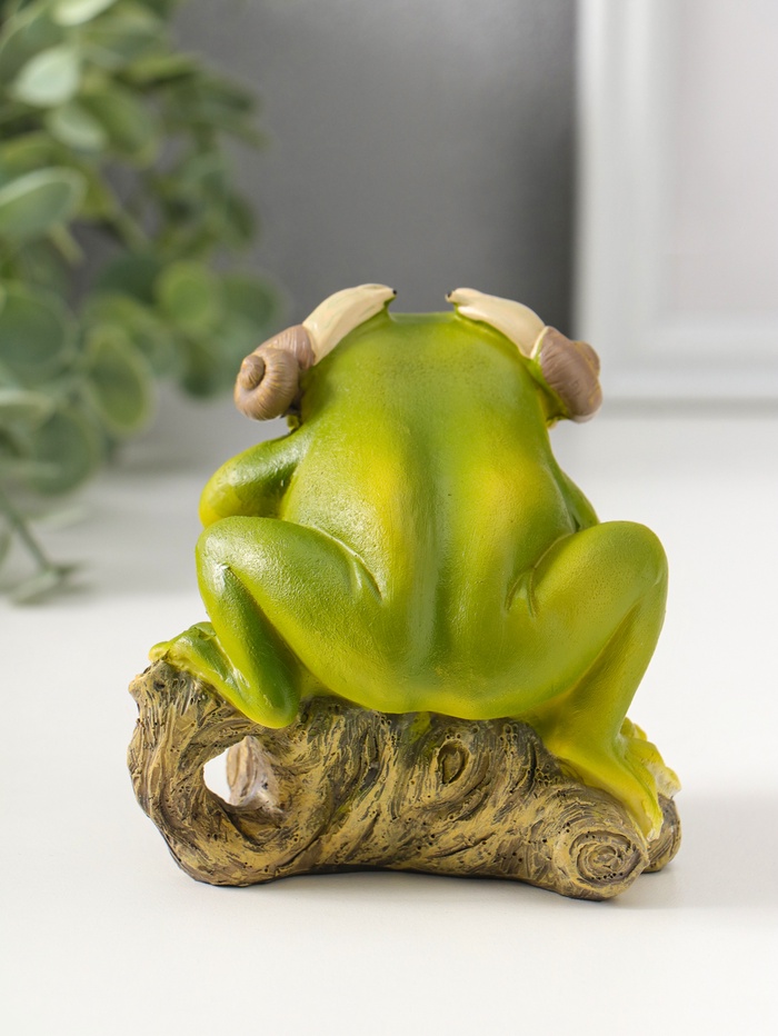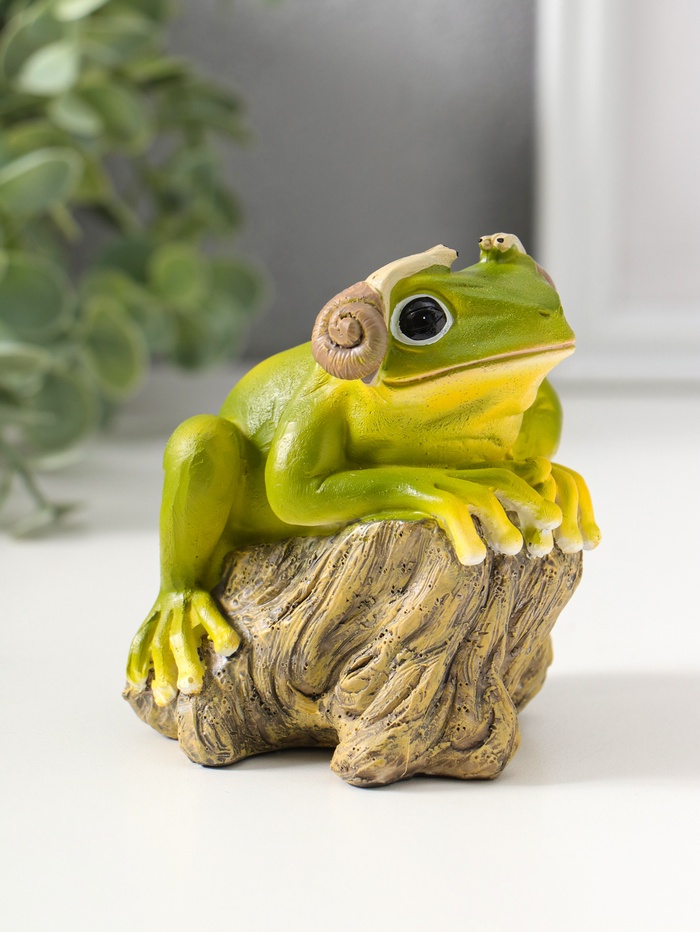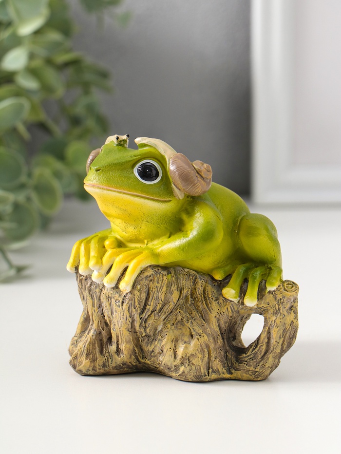 Фигурка полистоун «Лягушонок на коряге с улитками на ушах», 9.5 см