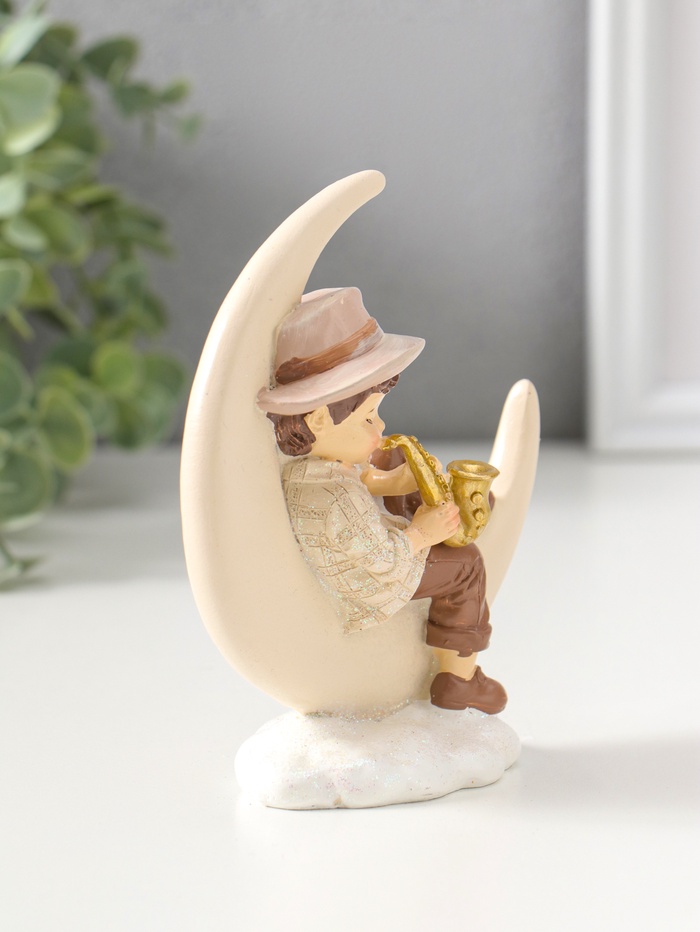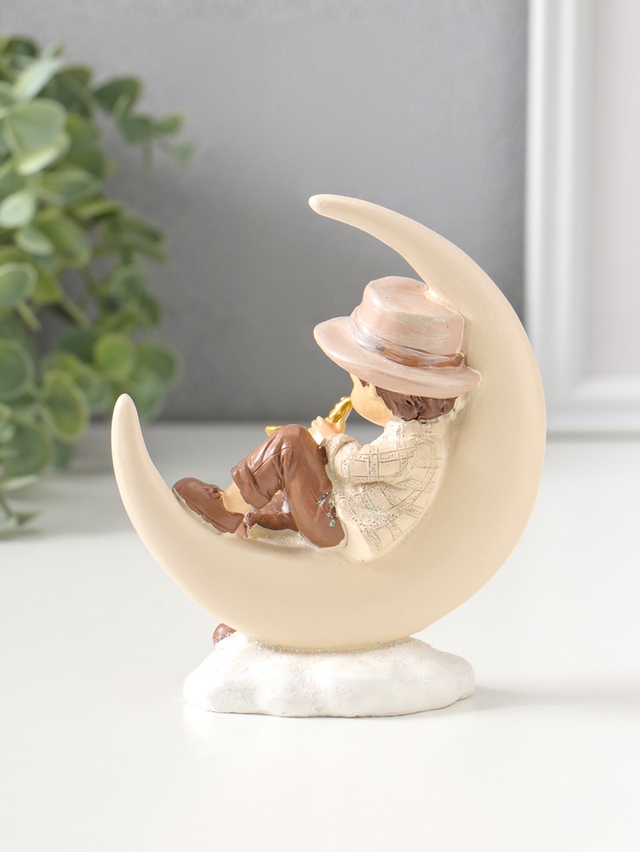Фигурка полистоун «Мальчик на месяце играет на трубе», 13 см