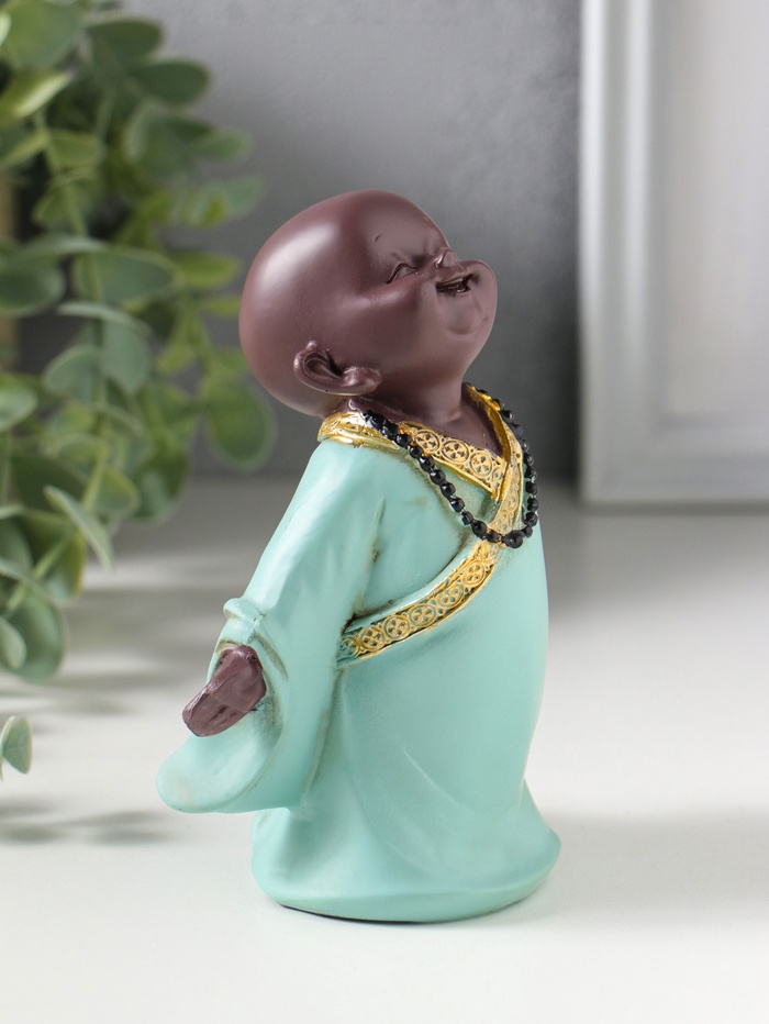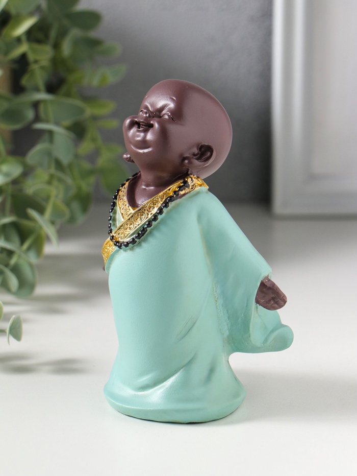 Сувенир полистоун "Маленький Будда в бирюзовом одеянии - счастье" 7х8,5х12,5 см