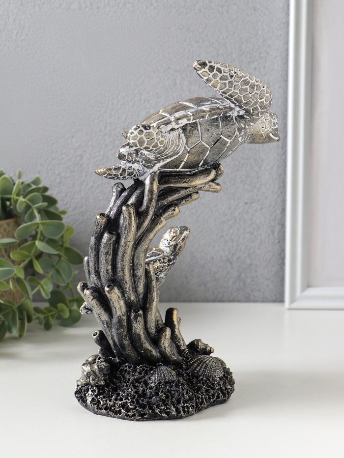 Фигура полистоун «Морские черепахи в кораллах», бронза с белой патиной, 14×12.5×21 см