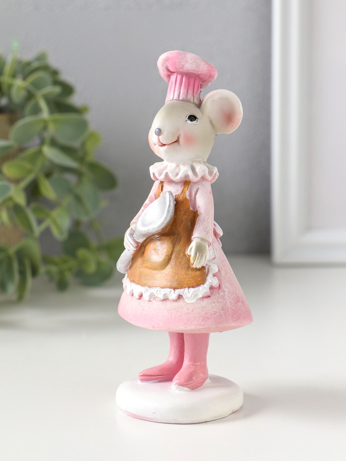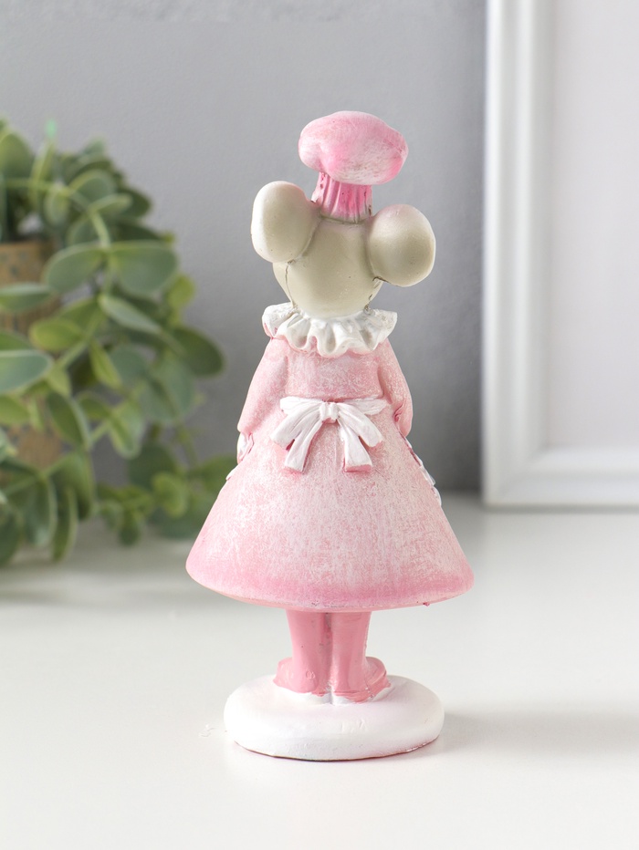 Фигурка полистоун «Мышка-поварёнок в розовом платье и колпаке, с ложкой», 6×4.5×13 см