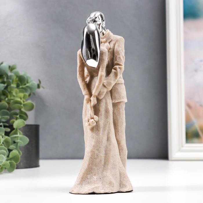 Сувенир полистоун "Пара влюблённых" песочный с серебром 23х9х7 см