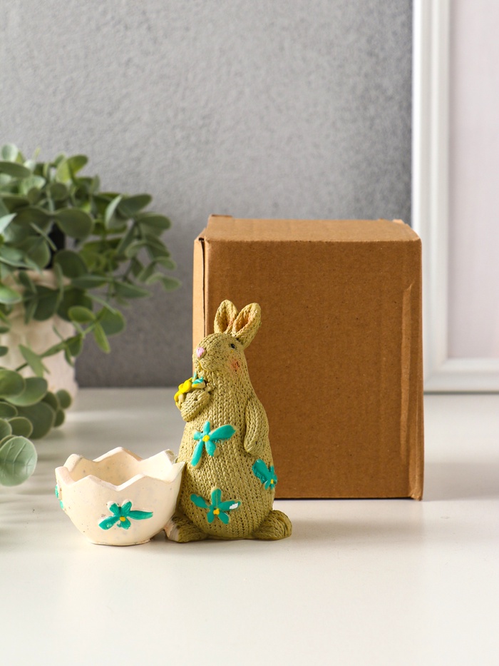 Фигурка-подставка полистоун «Зайчики пасхальные», набор 2 шт., 5.3×10×10 см