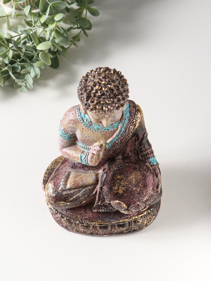 - Фигура изображает Будду в классической позе с цветком лотоса — символом чистоты и просветления.