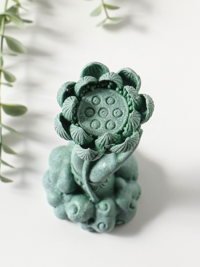 - Статуэтка окрашена в умиротворяющий зелёный оттенок.