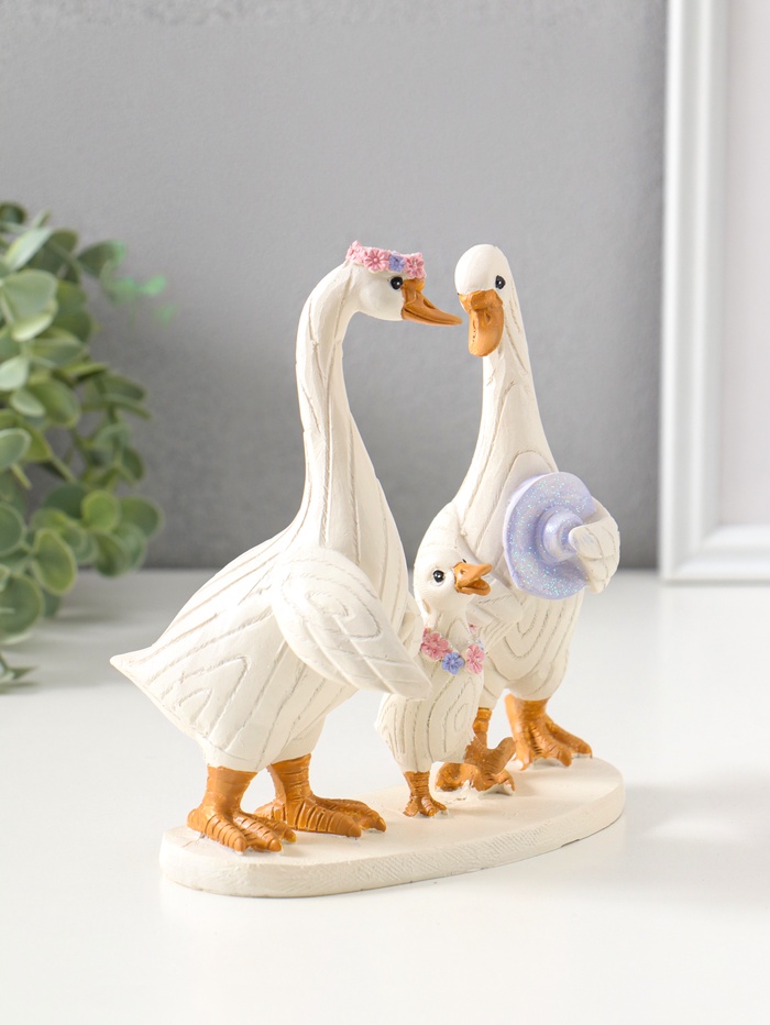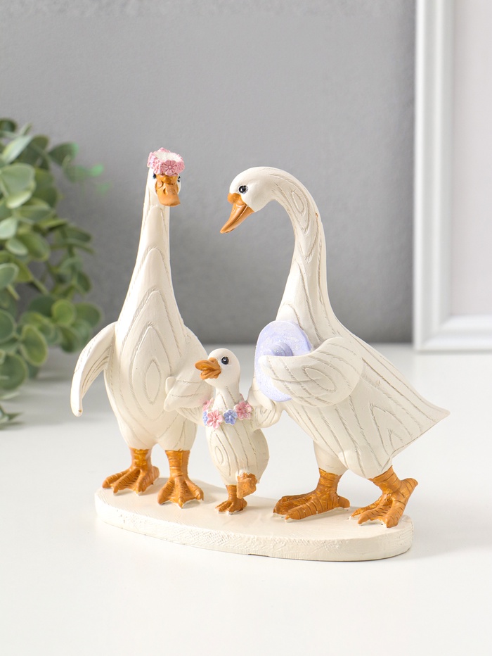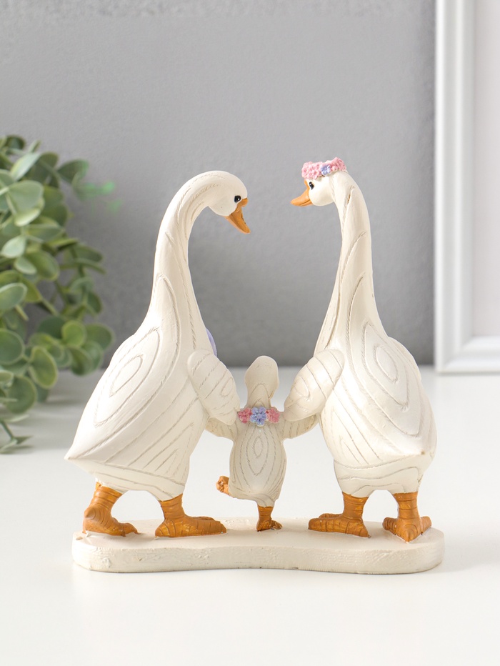 Фигурка полистоун «Семейство лапчатых гусей, с цветочными венками», 16.5 см