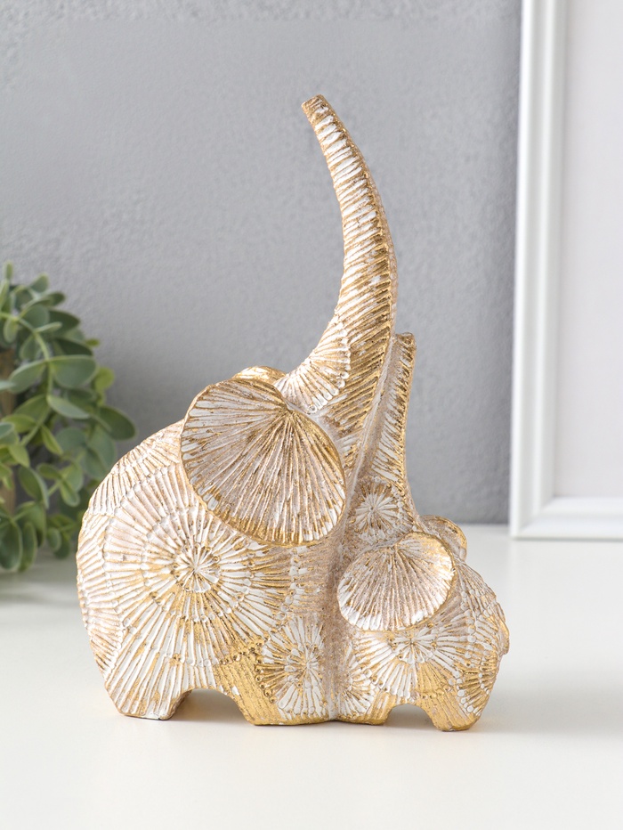 Фигура полистоун «Слон со слонёнком. Золотые круги», 15×7×20.5 см