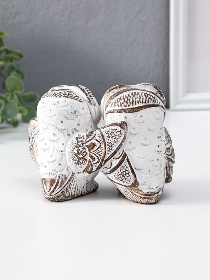 Скульптура сов — классический символ мудрости и взаимопонимания. Пара, застывшая в объятии, передаёт тепло близости, общие цели и поддержку. Такой подарок оценят влюблённые пары, лучшие друзья или коллеги. Он впишется в интерьер в стиле неоклассики, кантри или сканди, привнося уют и философское настроение. Это знак внимания, который останется с адресатом на долгие годы.