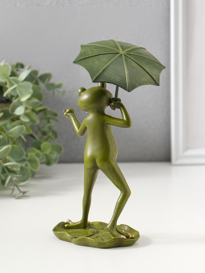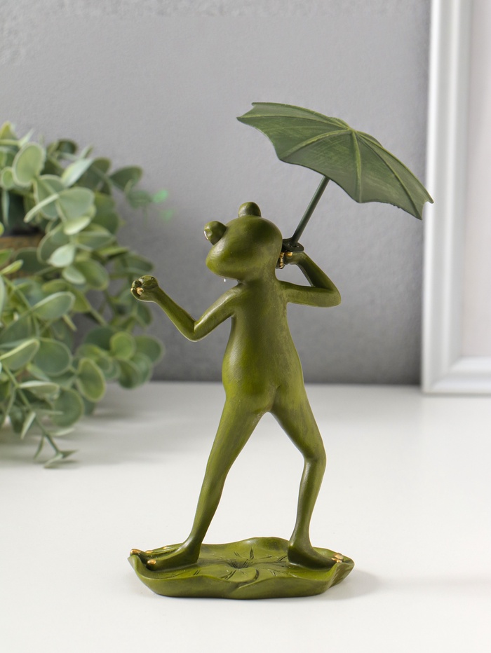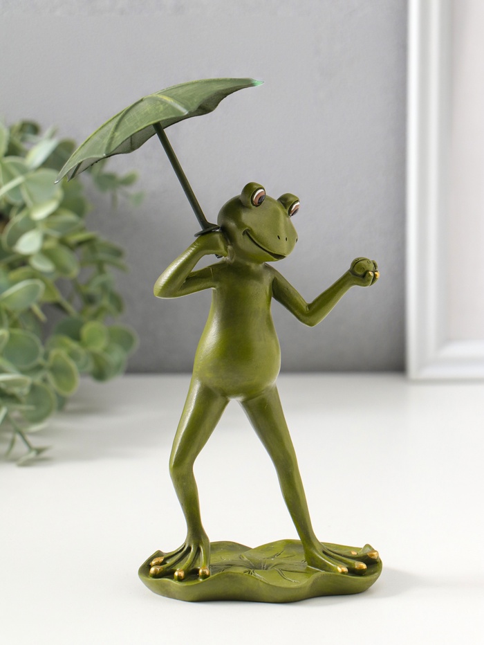 Фигурка полистоун «Танцующий лягушонок под зонтом, с божьей коровкой», 15.5 см