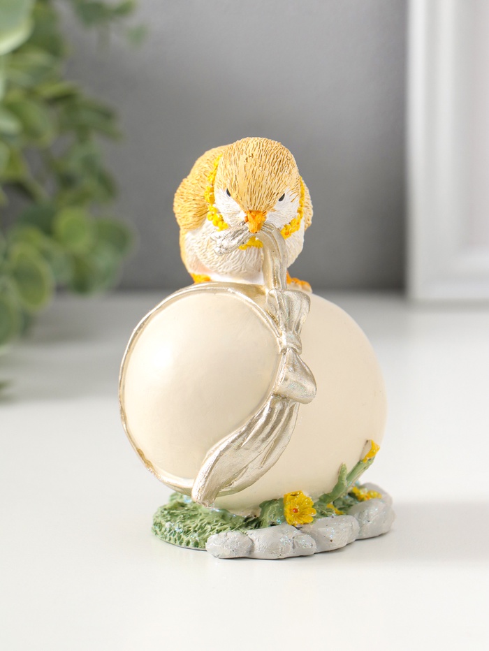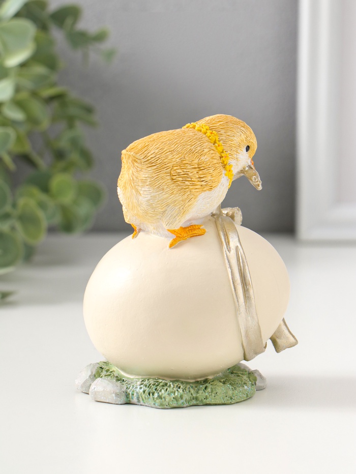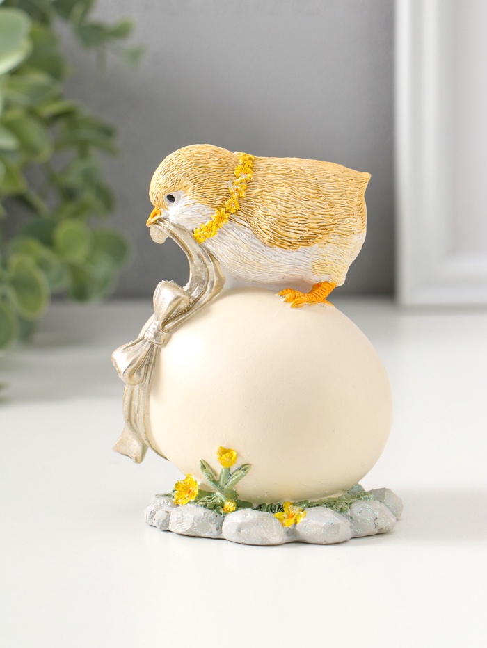 Фигурка полистоун «Цыплёнок завязывает подарочный бант на яйце», 11 см