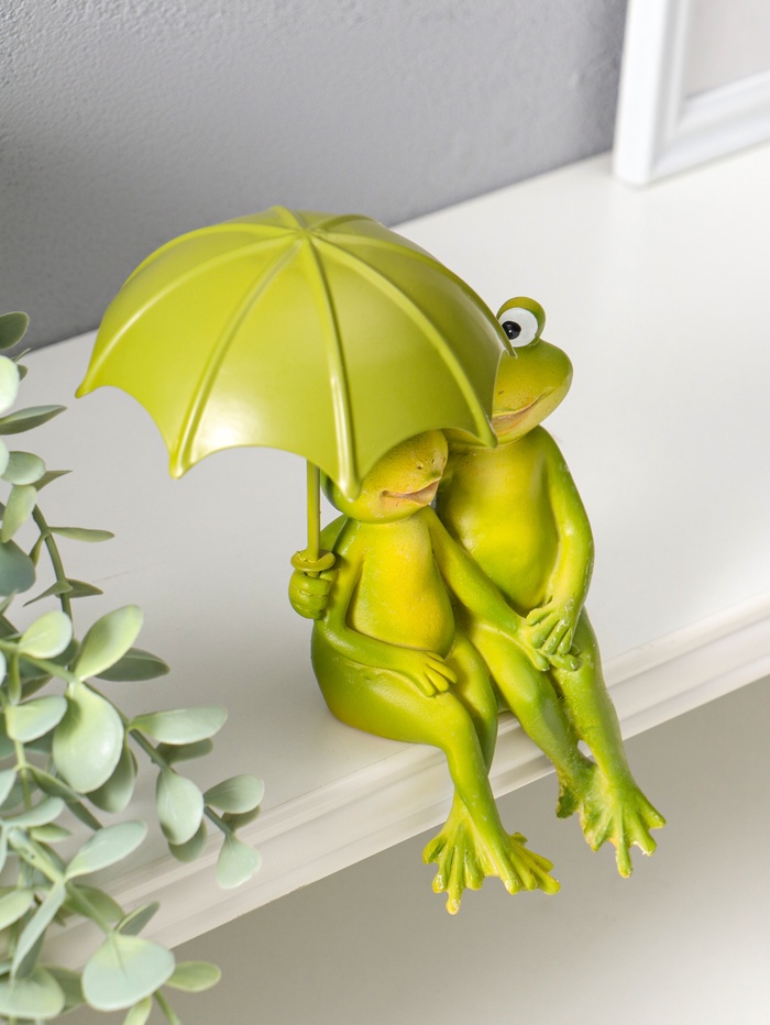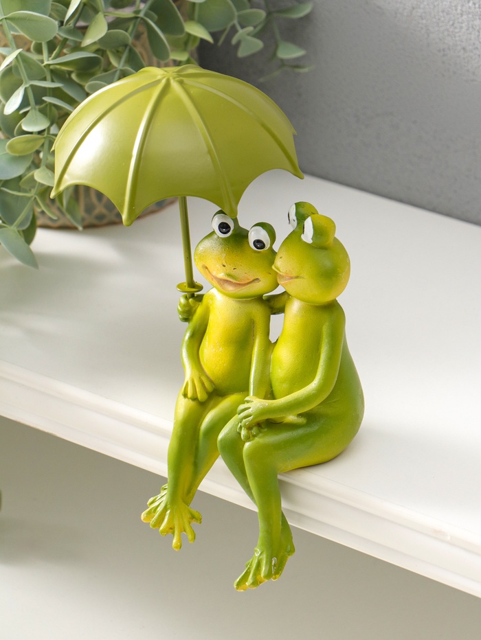 Фигурка настольная полистоун «Влюблённые лягушата под зонтом», на полку, 14 см
